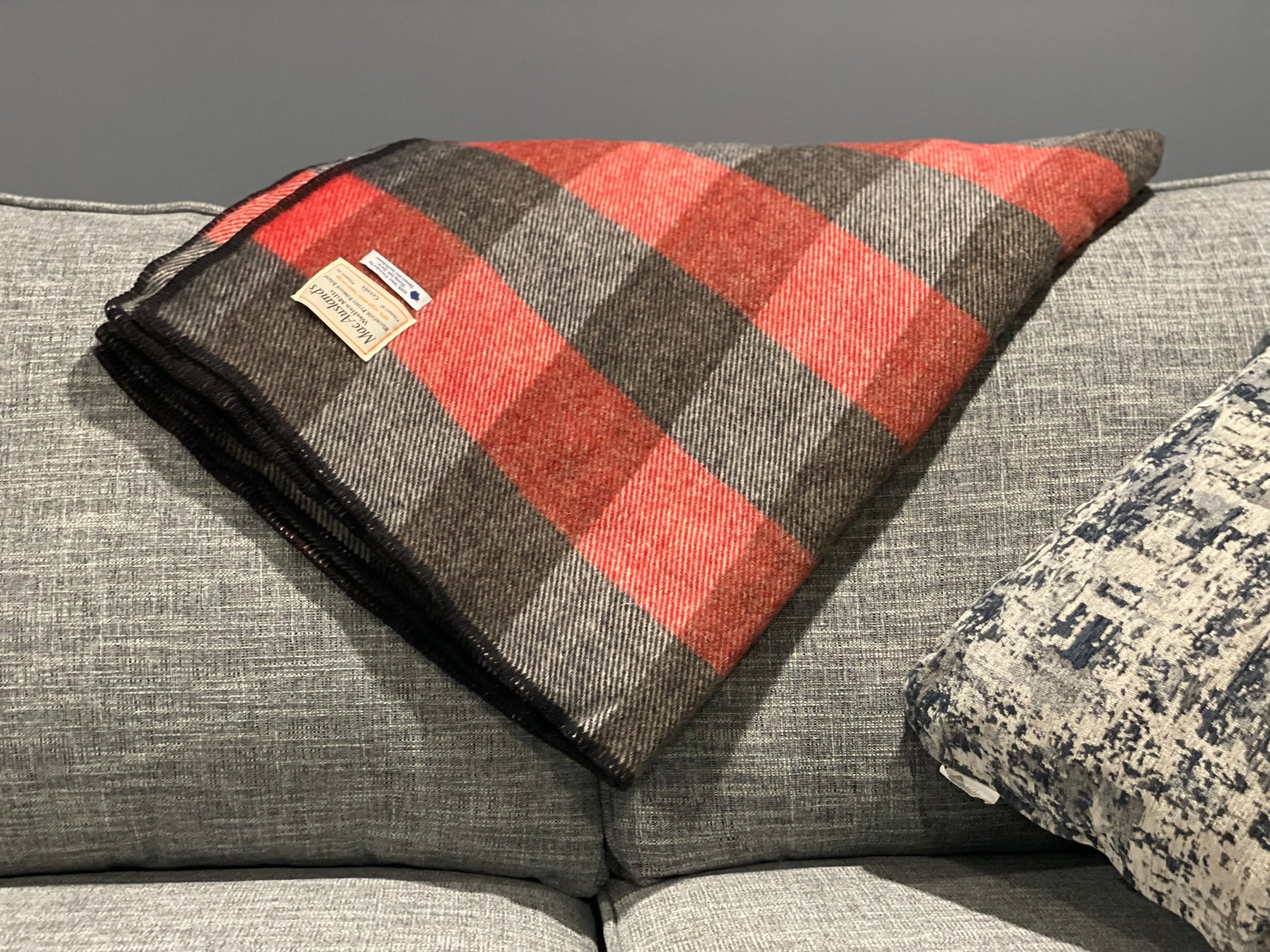 Our 100% wool blankets are made from the wool off of our sheep here on the farm. We shear the ewes and ship the quality fleeces to MacAusland’s Woollen Mill in the beautiful province of PEI, where they create these beautiful blankets for us to enjoy. These blankets are perfect for every occasion.